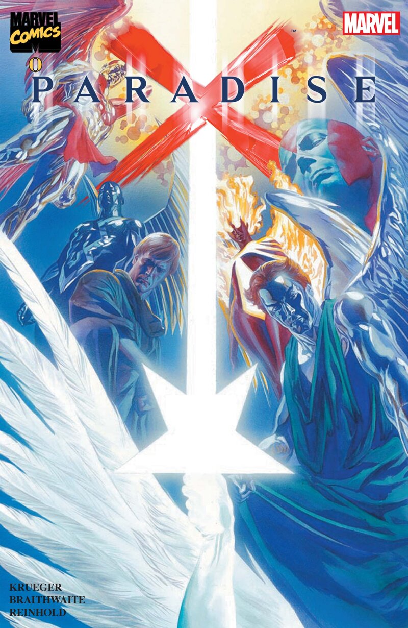 COMICS, USA, AMERICA, SUPERHEROES, AVVENTURA, SCIFI, FANTASCIENZA, SPACE OPERA, EPICO, MARVEL COMICS, AVENGERS, SUPERPOWERS, GODS, CAPTAIN MARVEL, THOR, FANTASTIC FOUR, SPIDER-GIRL, DOCTOR DOOM, ALEX ROSS, EARTH X, INHUMANS, JIM KRUEGER, DOUG BRAITHWAITE, PARADISE X